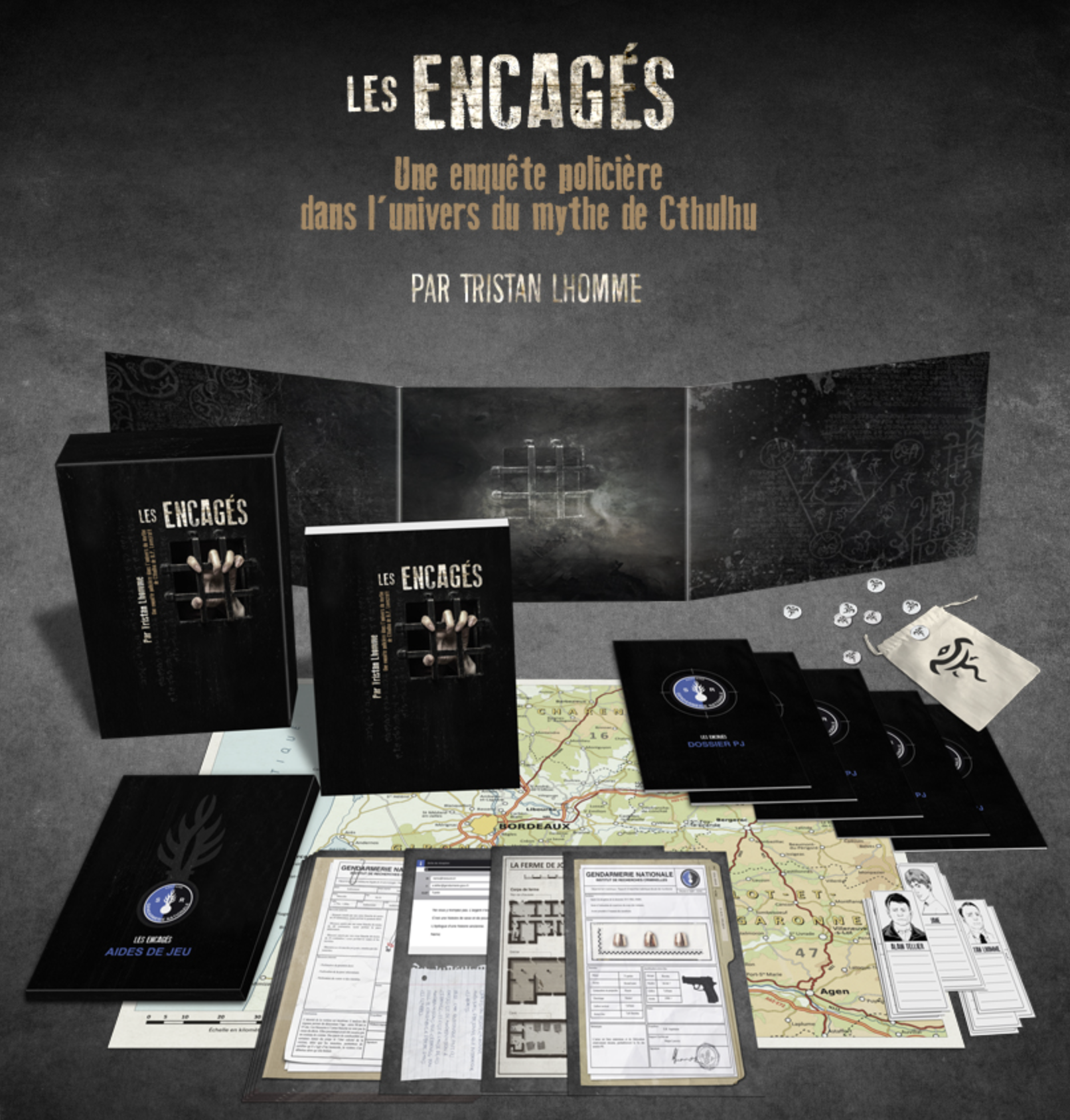 Les Encagés est une enquête policière contemporaine au format XXL, par Tristan Lhomme. Les joueurs incarnent des membres de la Section de Recherches Aquitaine, basée à Bordeaux. À la tête de l’équipe d’enquêteurs, les PJ devront fouiller les scènes de crime, interroger les suspects, demander des analyses à leurs collègues, le tout dans une atmosphère de plus en plus pesante au fur et à mesure qu’ils démêlent l’écheveau de l’intrigue.