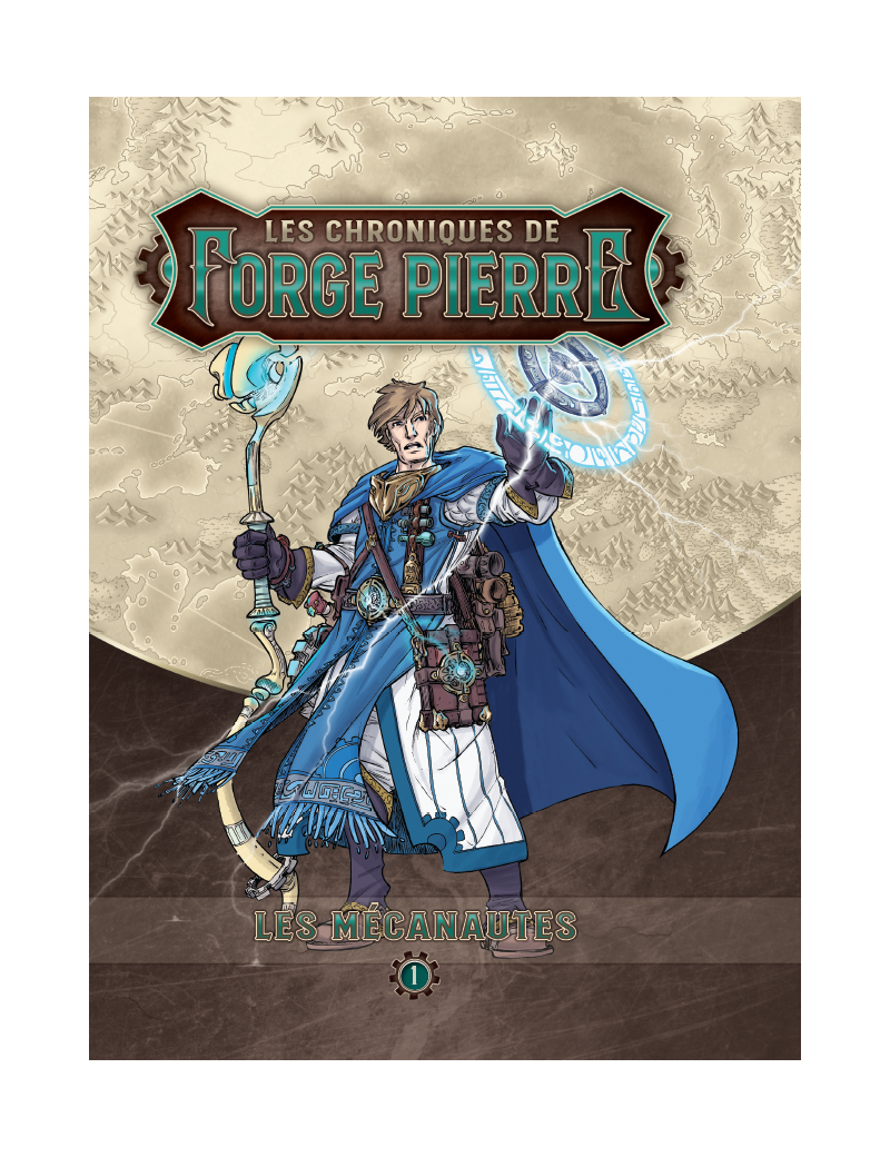 Les mécanautes est le livre principal de la gamme. Il contient tout ce qu’il faut pour jouer aux Chroniques de Forge Pierre. Vous y trouverez le descriptif complet de l’univers, toute la partie dédiée à la création de PJ, y compris des propositions de personnages prétirés avec des secrets liés à la campagne, ainsi que l’introduction à cette grande campagne.